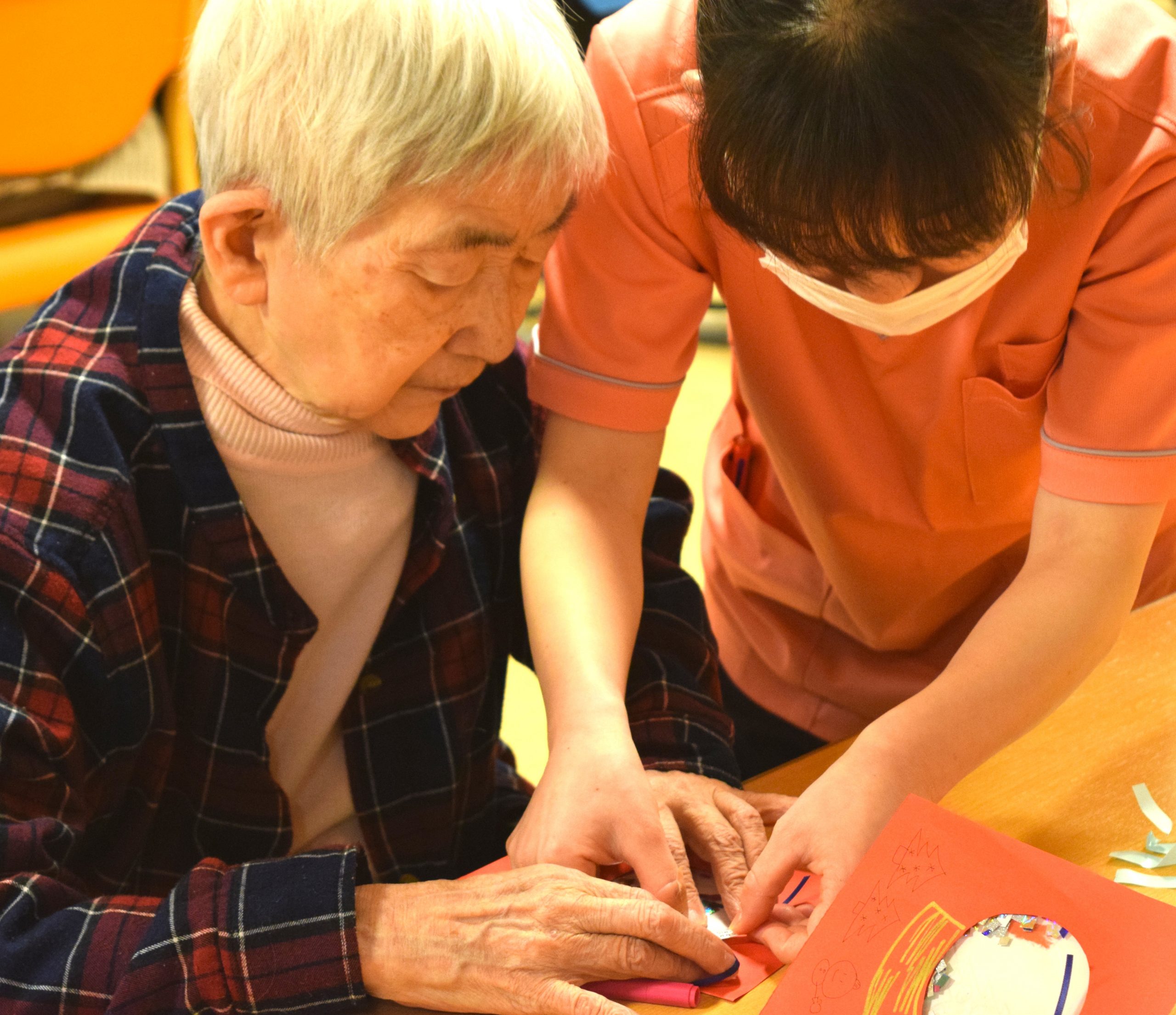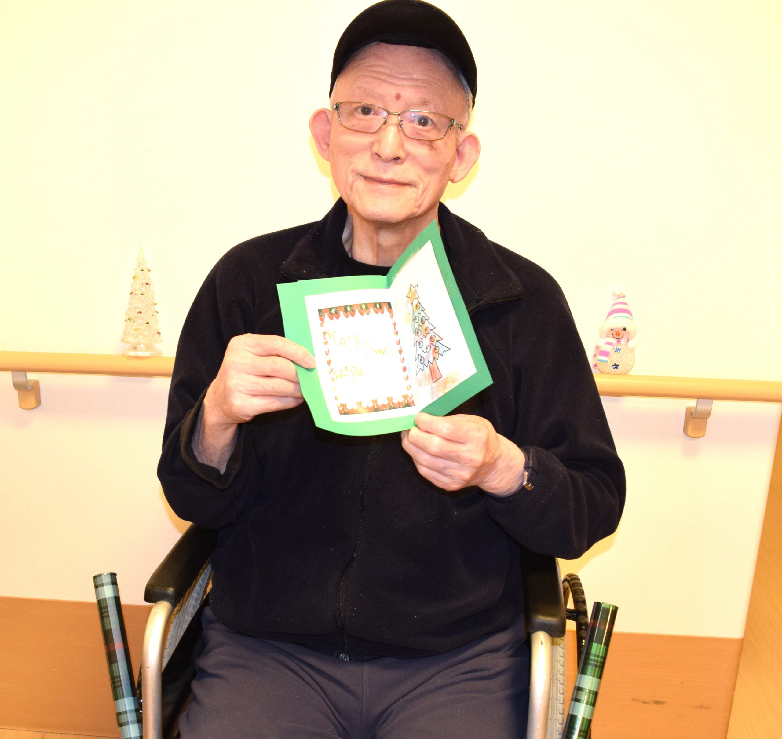 各フロアにもクリスマスツリーがあり、入居者様と飾りつけを行いました