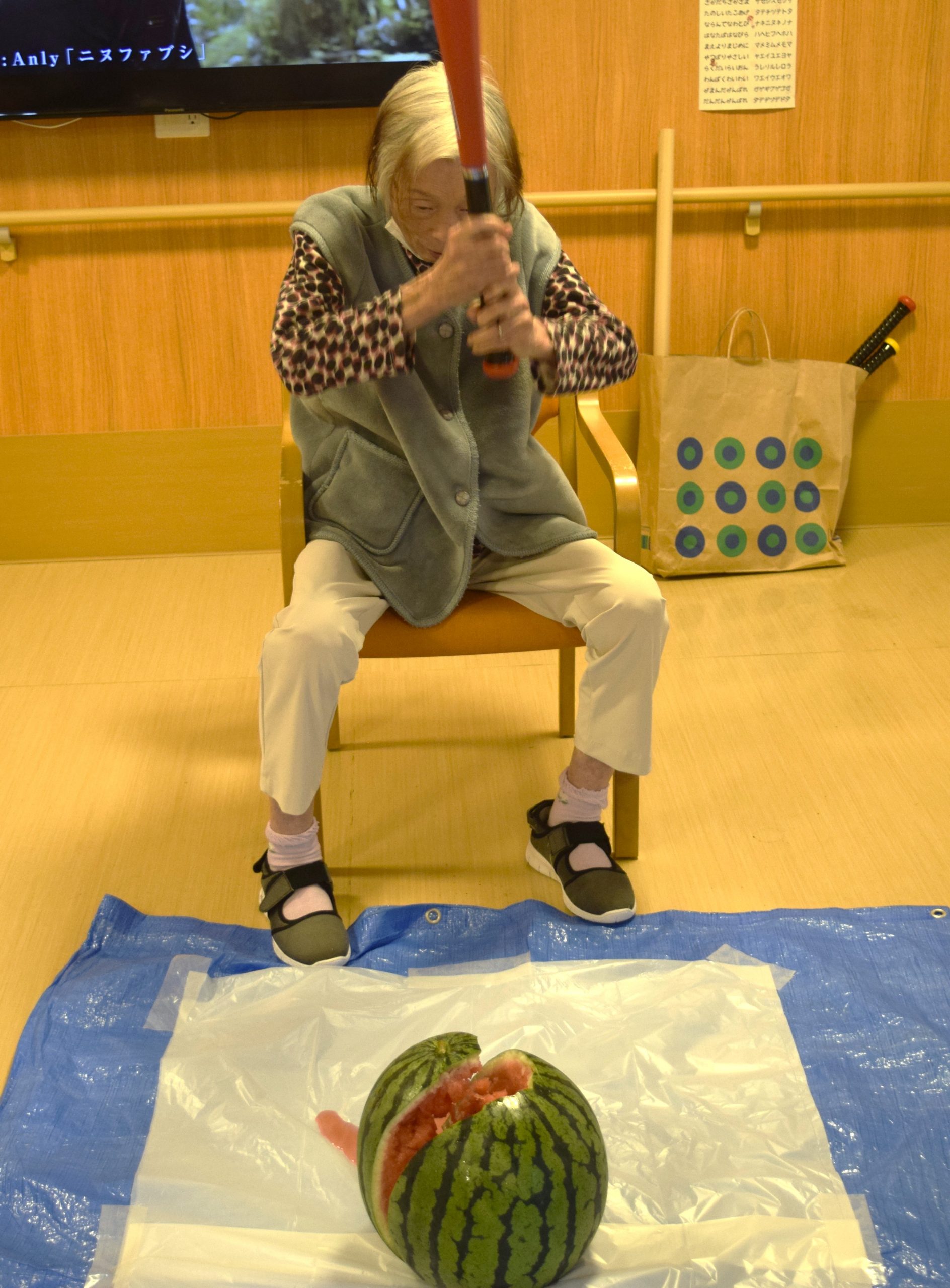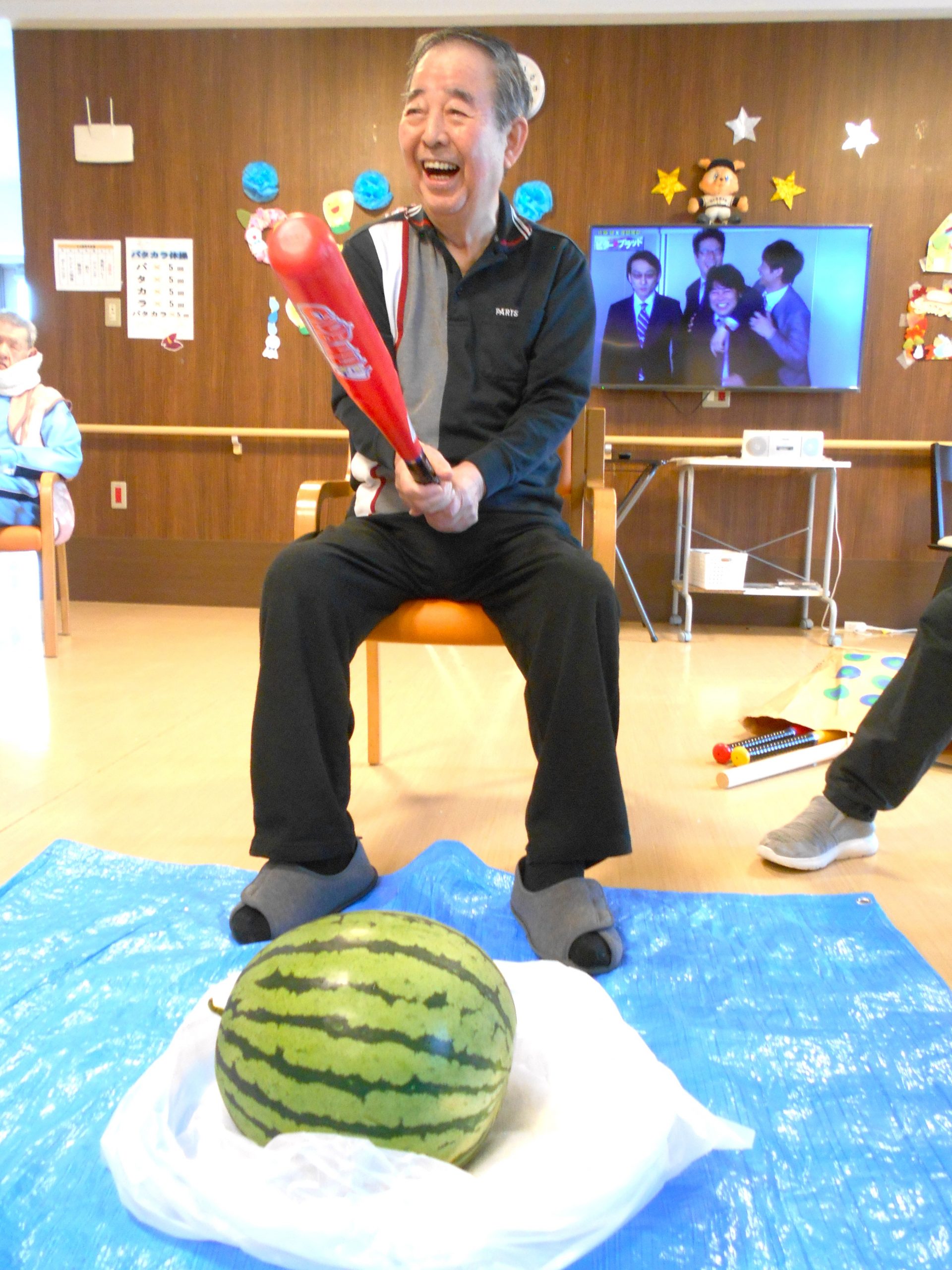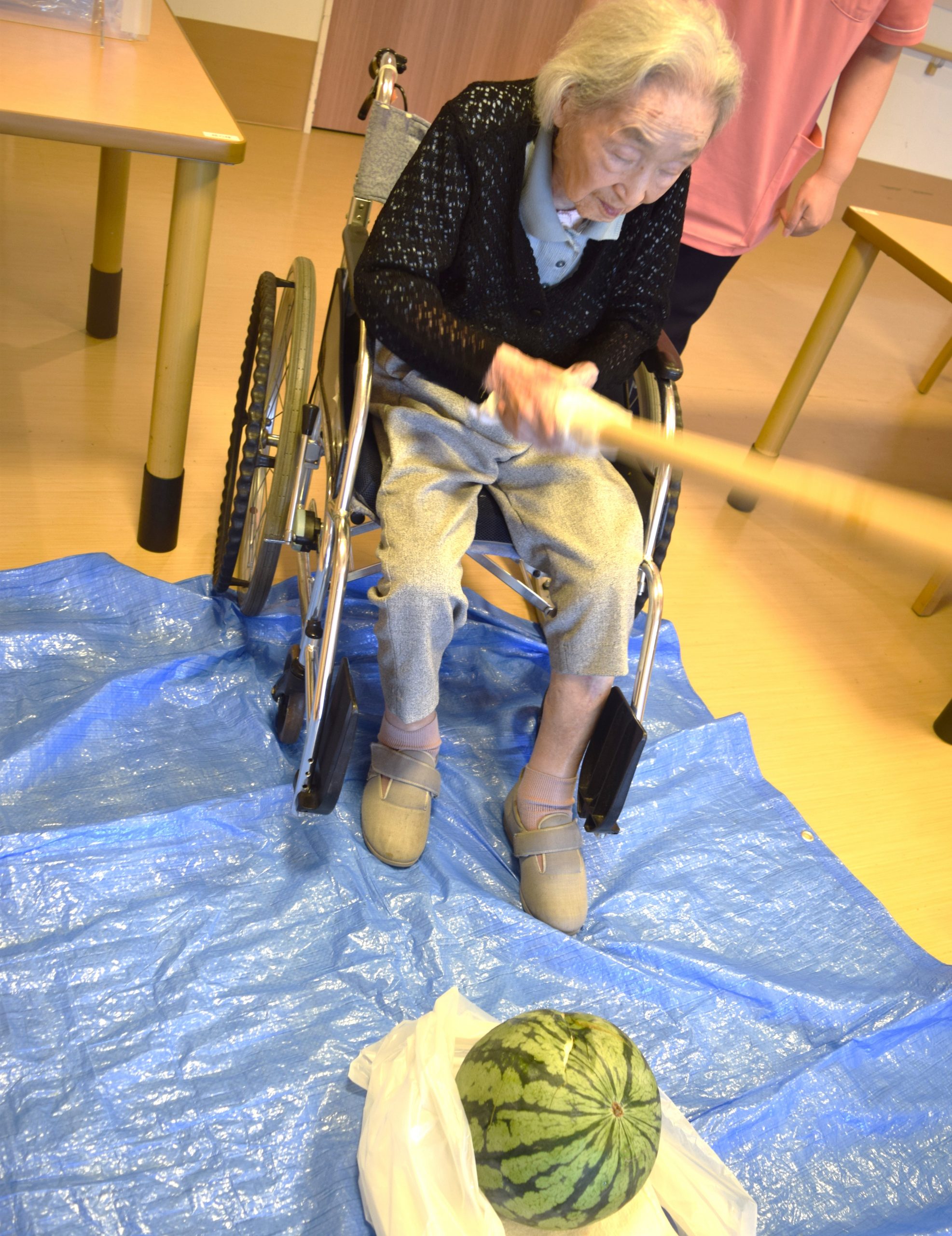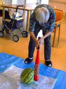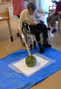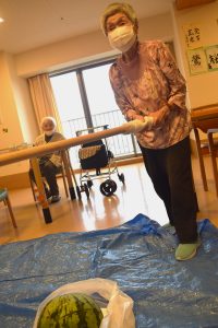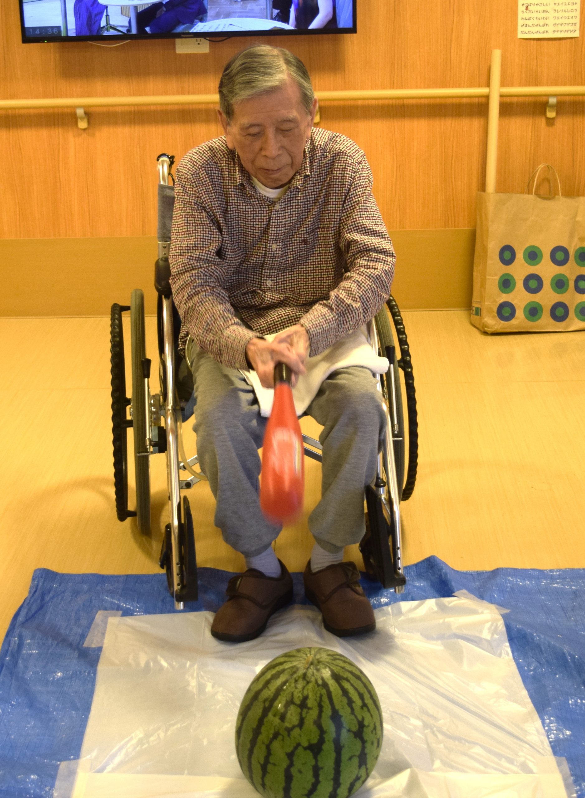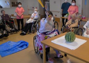 毎年恒例のスイカ割りを行いました。