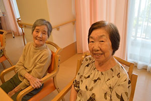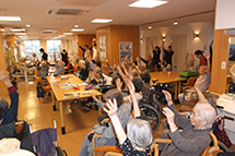 - ご入居様とスタッフみんなで体操を行います。お茶を飲み、楽しくおしゃべりしながらお過ごしいただけます。